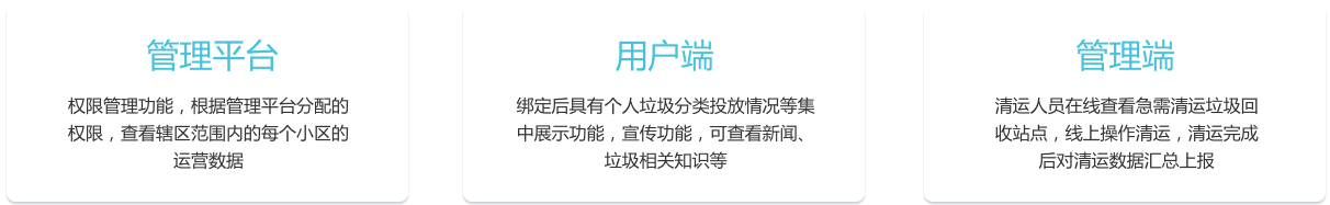 對垃圾分類進行智能化精細管理,通過平臺管理,實現綜合、完善、高效的垃圾投放、