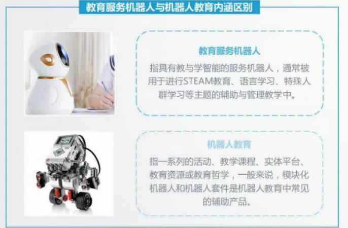 教育與機器人的結合具有J大的想象和可開拓空間,從中衍生岀了教育機器人與機器人教育這兩大概念。二者的主要區別在于:教 育服務機器人具有固定結構.一般不支持用戶自行拆裝。協助進行教學或學習活動的"機器人教育”和具有教育服務智能的"教育 月艮務機器人"可統稱為教育機器人,因此本報告的研究內容即教育機器人同時涵蓋教育服務機器人與機器人教育這兩部分。