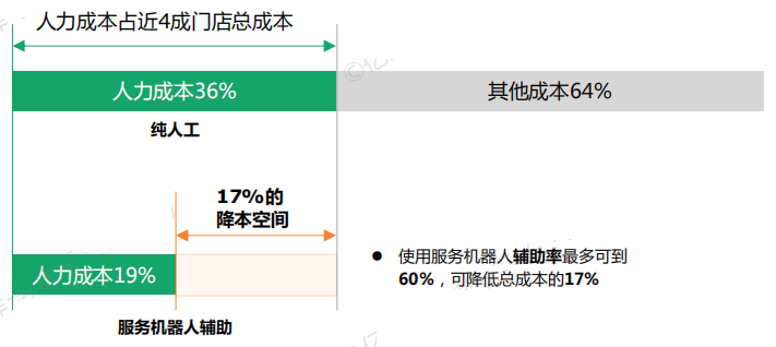送餐已經可以通過機器人自主完成,員工可以把節省出來的時間和精力,投入在給客人慶生,涮菜涮肉等服務水平的提升上,機器人真正帶來了降本增效