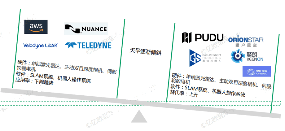 之前雖然頭部商用服務機器人廠商多為中國企業,但大部分核心零部件依舊依賴進口,自研實力有限。近些年中國服務機器人廠商逐項突破核心技術“卡 脖子”難題,實現大幅降低生產成本,保障供應鏈暢通穩定。