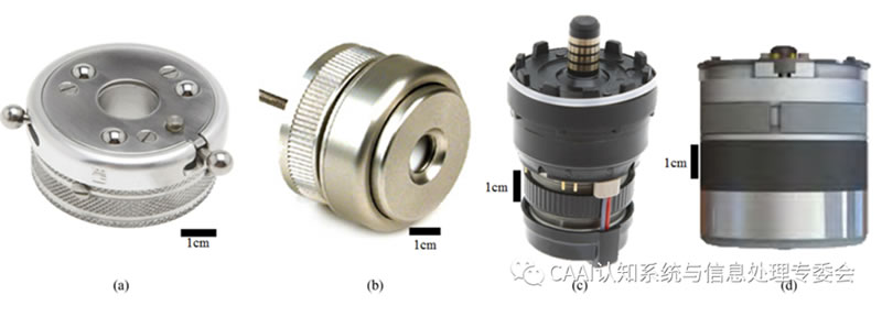 主動單自由度腕部通常在假肢和機器人應用中都能找到。在假肢L域,這些系統通常與EMG系統一起使用,使用戶能夠通過肌肉信號控制旋轉。活動手腕可以是獨立的單元集成到假手中,或者集成到較大假手中的前臂中。與被動手腕類似,主動單自由度裝置也可分為旋轉器和屈肌。主動旋轉器是腕部假體中常見的動力裝置。獨立設備包括運動控制電動旋轉器和OB腕部旋轉器,如圖(c)所示,這兩種設備都是為與許多終端設備兼容而設計的,因而得到了相對廣泛的應用。OB-Michelangelo手和TBi-Limb Quantum都使用緊湊的旋轉器,即軸旋轉和俯臥旋轉[圖(d)],它們分別安裝在各自手的假體窩和下手掌中,主動屈肌也往往納入現有的機器人手或終端設備系統。
