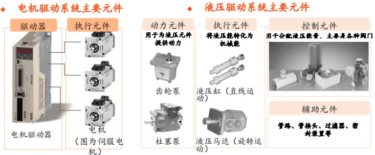 液壓驅動:采用液體作為介質,通過液體壓力實現驅動的方式。具有小型輕質、響應速度快、傳動平穩等優勢,但維護 難度較大。液驅系統在大型、重載、特種機器人中存在一定的應用。波士頓動力的機器人Atlas采用液壓驅動方案。