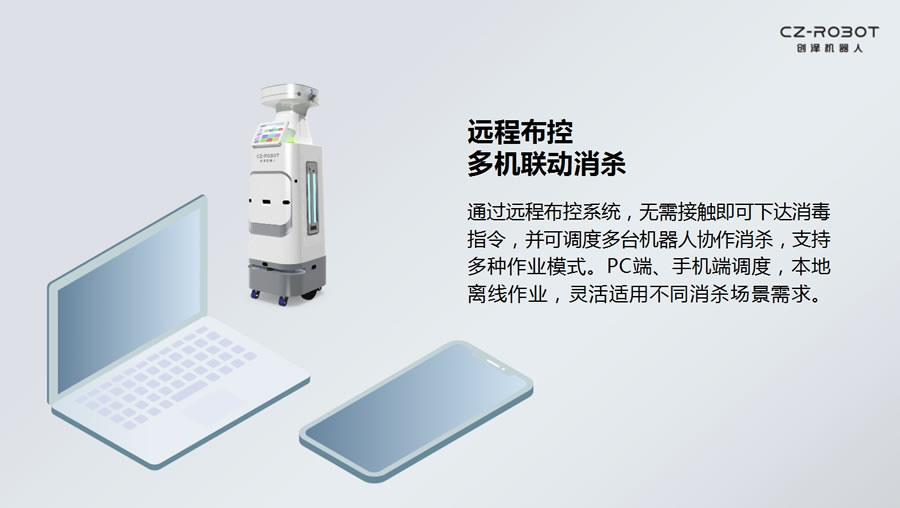 消毒機器人編號:CZ-RobotDf-DZ,可實現等離子消毒、紫外線消毒、地面消毒等多模式智能消毒,通過智能軟件管理。實現智能化消毒
